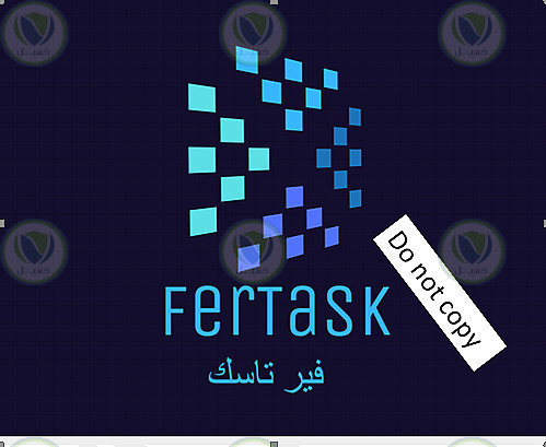 شعار فيرتاسك باللغتين مع اختيار الوان توحي الى مجال التكنولوجيا مع اختيار رسمة شبكية