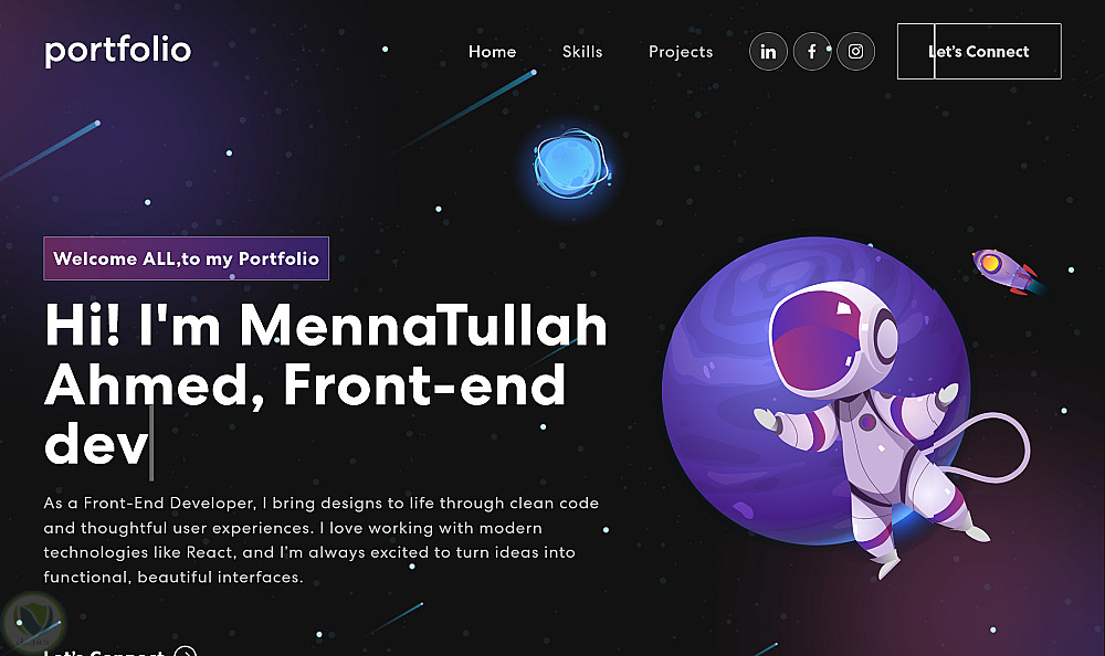 تم تطوير موقع Portfolio Website تفاعلي باستخدام React مع HTML5, CSS3, Bootstrap لتحقيق تصميم عصري وواجهة مستخدم متجاوبة بالكامل مع جميع الشاشات.