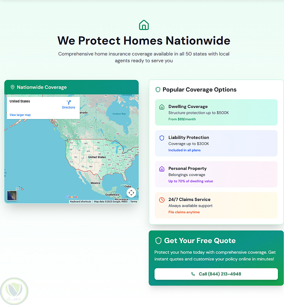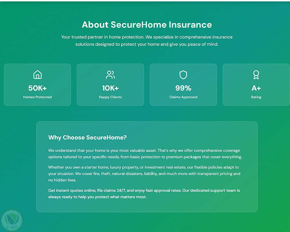 صفحة هبوط احترافية لشركة تأمين منازل