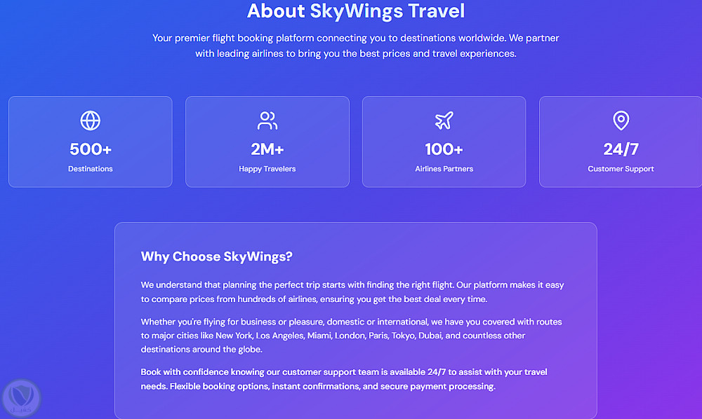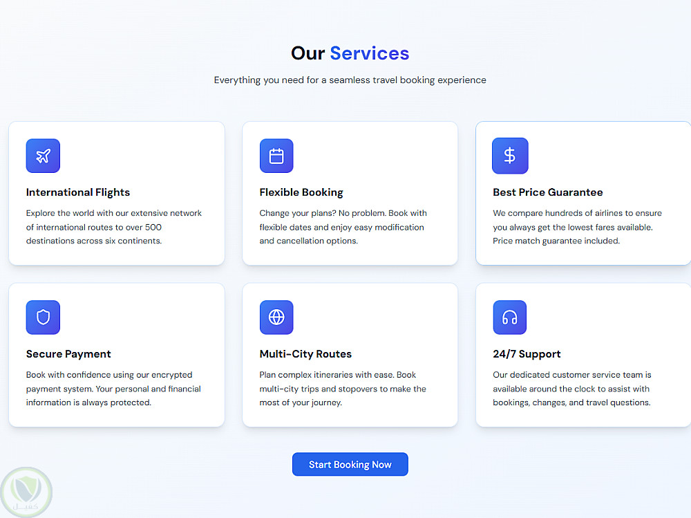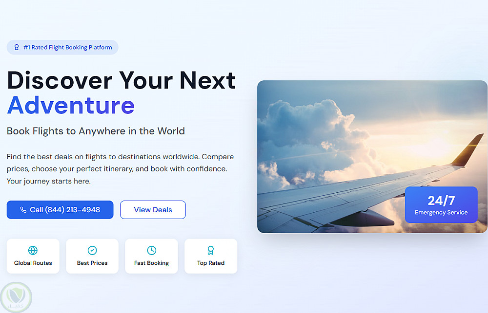 صفحة هبوط لشركة حجز طيران باستخدام ريأكت
