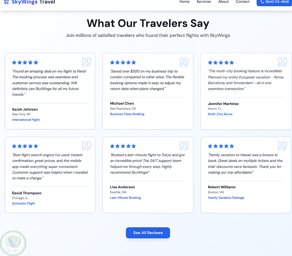 قمت بتصميم وتطوير صفحة هبوط متكاملة لمنصّة حجز رحلات طيران تركز على إبراز سهولة الحجز وأسعار الرحلات مع تجربة مستخدم سلسة وتصميم حديث. تحتوي الصفحة على قسم هيرو بعناوين جذابة، نص تعريفي بالمزايا، أزرار CTA واضحة، شارات ثقة، وصورة تعبّر عن عالم الطيران، بالإضافة إلى شريط تنقل وتذييل مرتبطين بهوية بصرية مستوحاة من ألوان السماء. تشمل الأقسام الرئيسية من نحن، الخدمات، لماذا نحن، الوجهات المرتبطة بخريطة، آراء العملاء، وتواصل معنا. تقنيًا استخدمت React مع TypeScript وVite لبناء واجهة سريعة وقابلة للتوسّع، إلى جانب Tailwind CSS لتصميم متجاوب وFramer Motion لإضافة حركات سلسة. يوضح هذا المشروع قدرتي على تحويل فكرة منصّة حجز طيران إلى Landing Page تسويقية تركز على زيادة التحويلات مع كود منظم وتجربة مستخدم مريحة.