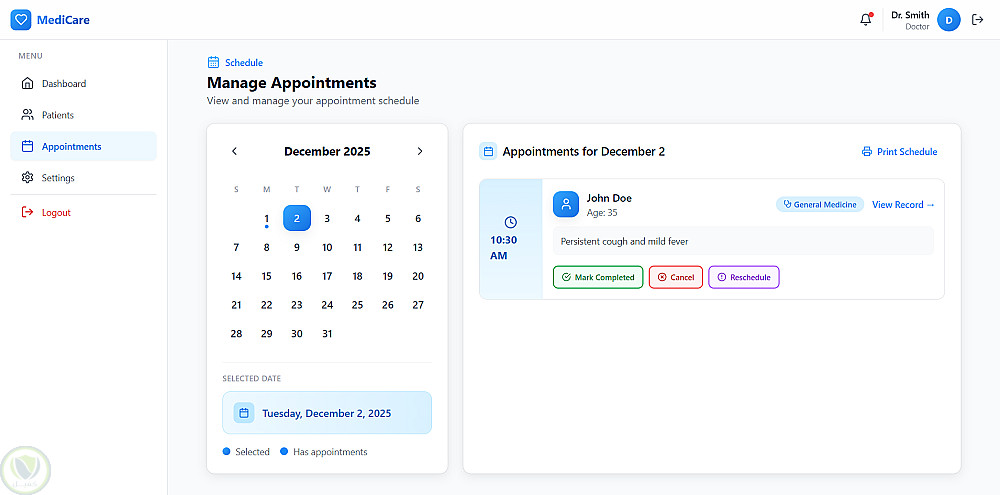 -حجز وتنظيم المواعيد للدكاترة، بحيث كل دكتور يقدر يشوف يومه ومواعيده.