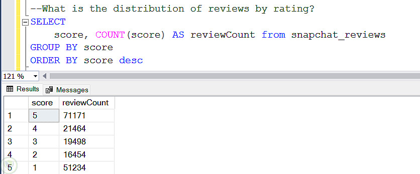 مخطط عمودي يوضح توزيع المراجعات حسب التقييم (من 1 إلى 5).