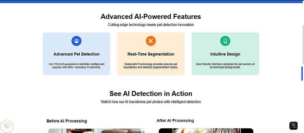 يستخدم التطبيق نموذج Deep Learning مبني بتقنيات Python, TensorFlow, وOpenCV لتحليل الصور والتعرّف تلقائيًا على نوع الحيوان.