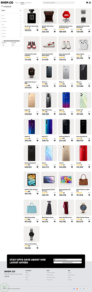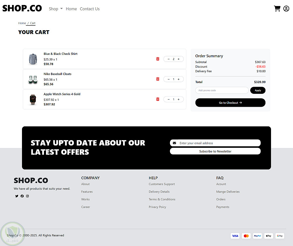 يتيح الموقع تصفّح المنتجات، إضافة العناصر إلى سلة التسوق، وإدارة السلة بشكل ديناميكي باستخدام JavaScript فقط بدون أي Backend.