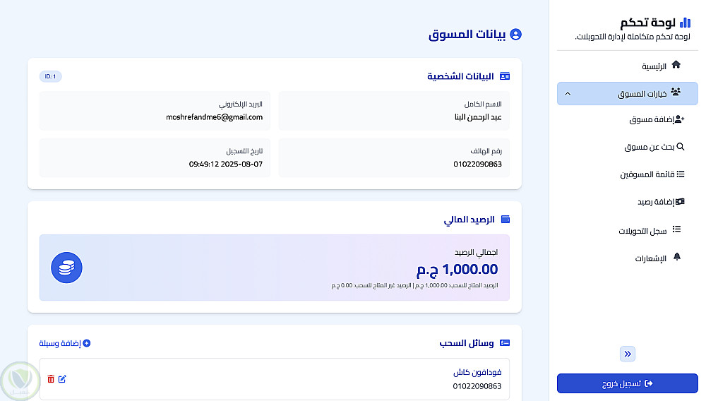صفحة هبوط لمنصة تسويقية مع لوحتين تحكم