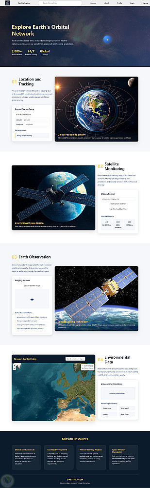 "Orbital View" هي واجهة ويب متكاملة مصممة لتقديم عرض بصري مُنظم لمعلومات الأقمار الصناعية ومداراتها، محاكاةً لتجربة مراكز التحكم الفضائي.
