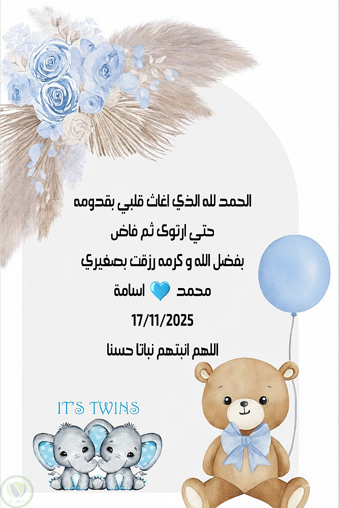 كارت مولود بتصميم لطيف ومبهج، معمول بأسلوب هادي يناسب أجواء الاحتفال بالمولود الجديد.