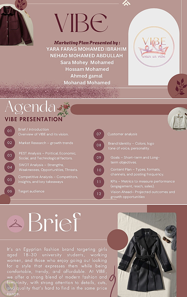 قمت بوضع وتنفيذ استراتيجية تسويقية متكاملة لبراند الملابس VIBE بهدف زيادة الوعي بالعلامة التجارية وبناء هوية شبابية واضحة على منصات التواصل الاجتماعي. بدأت بتحليل الجمهور المستهدف وتحديد الرسالة التسويقية التي تركز على الستايل وأسلوب الحياة وليس المنتج فقط. تولّيت تخطيط المحتوى واختيار أفكار فيديوهات قصيرة تتماشى مع هوية البراند وتواكب الترندات بشكل ذكي. كما أدرت الإعلانات المدفوعة مع استهداف دقيق واختبار أكثر من صيغة إعلانية وتحسين الأداء بناءً على النتائج.
