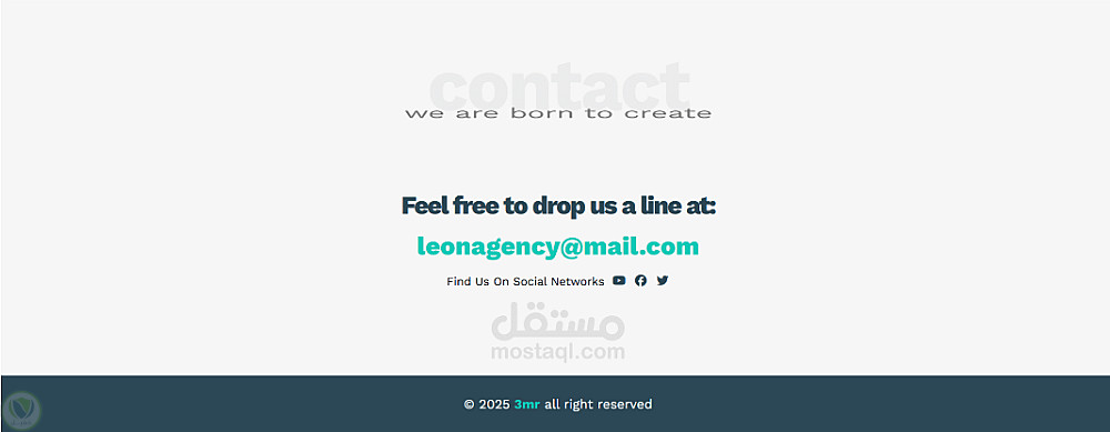 - قسم Contact للتواصل وعرض الإيميل ووسائل التواصل