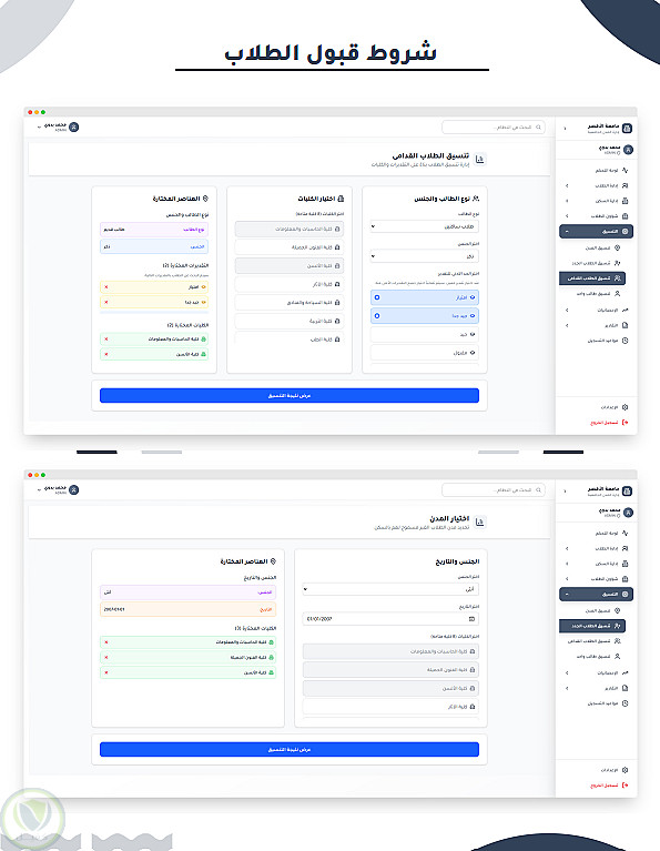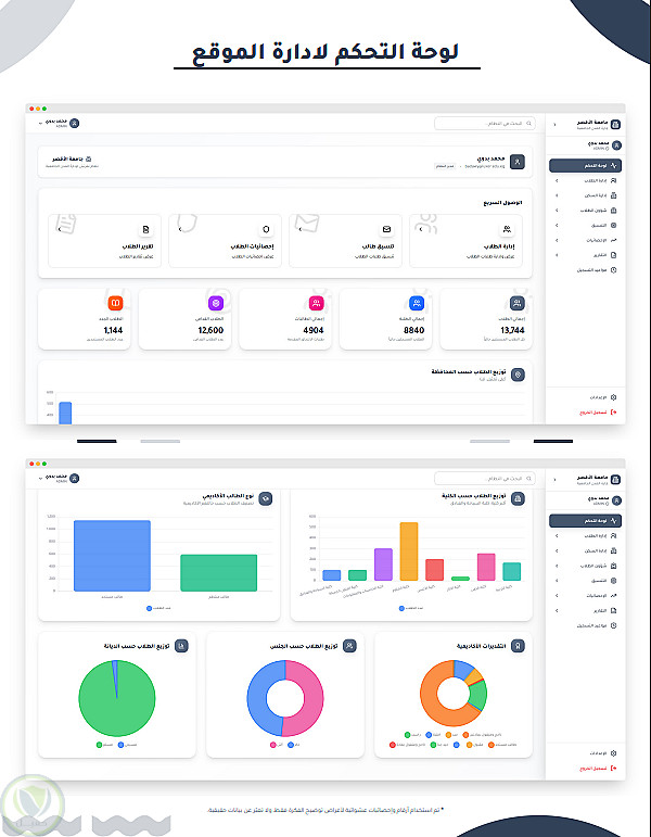 - لوحة تحكم مركزية شاملة لمتابعة كافة إحصائيات وبيانات الطلاب المتقدمين.
