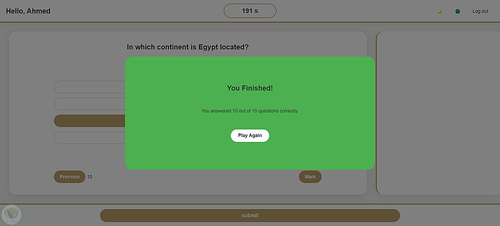 - حساب النتيجة تلقائيًا بعد الانتهاء من الاختبار