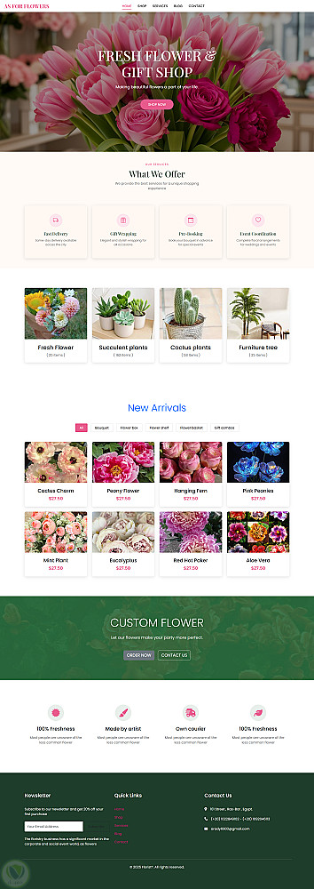 يوفر الموقع مجموعة متنوعة من الورود الطبيعية، النباتات المنزلية، تنسيقات الزهور، وبوكيهات الهدايا المناسبة لجميع المناسبات مثل الأفراح، أعياد الميلاد، والمناسبات الخاصة.