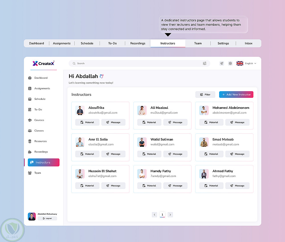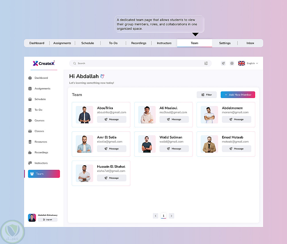 - عرض المحاضرين وأعضاء الفريق