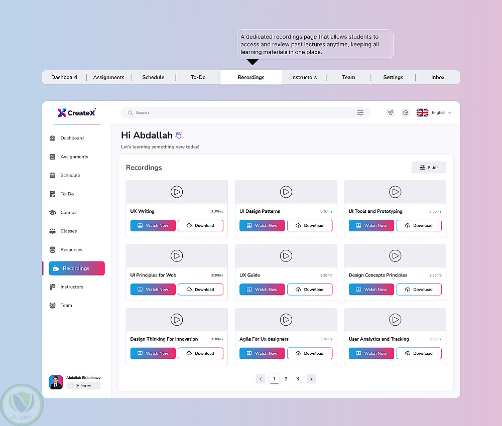 - الوصول إلى المحاضرات المسجلة