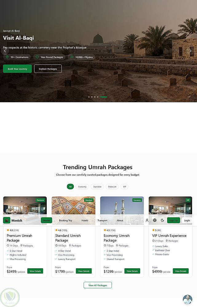 موقع مناسك هو منصة احترافية لحجز العمرة والحج لشركة سياحية، صُمم لتسهيل عمليات الحجز والاستفسارات للحجاج. يعرض الموقع تفاصيل واضحة عن الباقات والخدمات، ويقدّم واجهة مستخدم سهلة الاستخدام ومتجاوبة مع جميع الأجهزة. يركز الموقع على سهولة الاستخدام، الأداء، وبناء الثقة، مما يساعد الوكالة على عرض خدماتها بشكل احترافي والوصول للعملاء بفعالية.