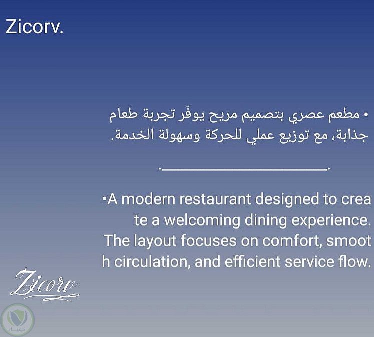 تصميم مطعم احترافي يجمع بين الجمال والوظيفة مع توزيع مثالي للمساحات والديكور ليعكس هوية المطعم ويضمن تجربة مريحة وجذابة للزبائن باستخدام مخططات 2D و3D قابلة للتعديل.