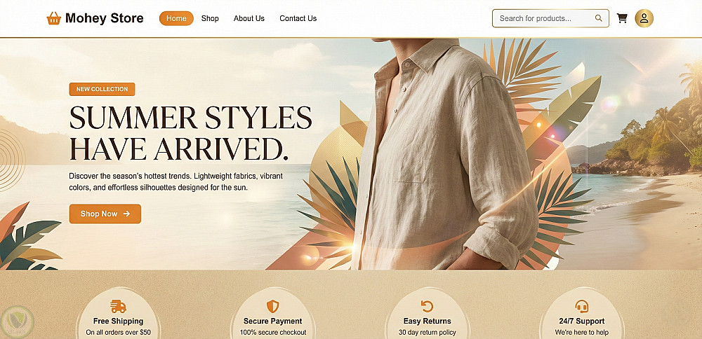 تم تصميم وتطوير واجهة مستخدم لمتجر إلكتروني (E-commerce) متخصص في بيع الملابس العصرية. يهدف المشروع إلى تقديم تجربة تسوق سلسة وجذابة تركز على "المجموعة الصيفية الجديدة"، مع الاهتمام بجماليات التصميم البسيط (Minimalist Design) وسهولة الاستخدام.