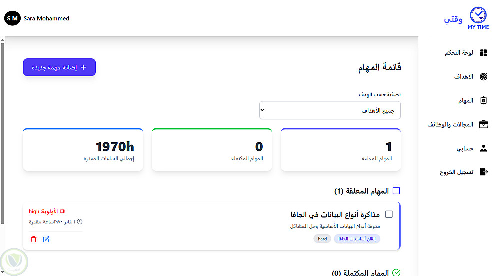 MyTime – نظام ذكي لإدارة المهام الشخصية