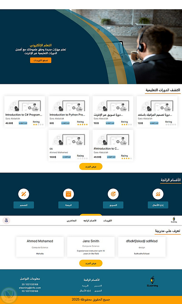 E Learning هي منصة تعليمية متطورة تهدف لتمويل الربط بين المحاضرين والطلاب، مع التركيز على كفاءة إدارة المحتوى وسلاسة تجربة المستخدم.