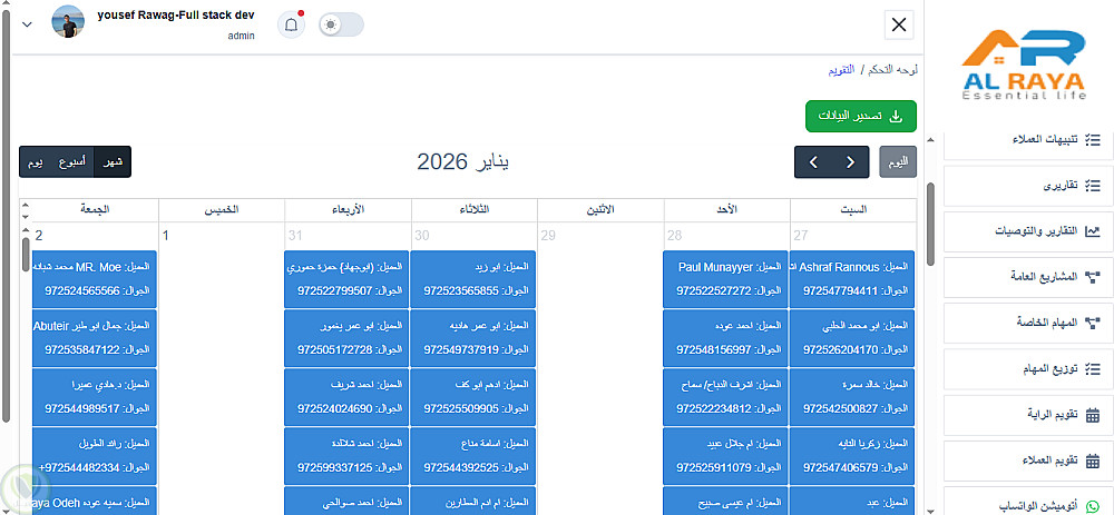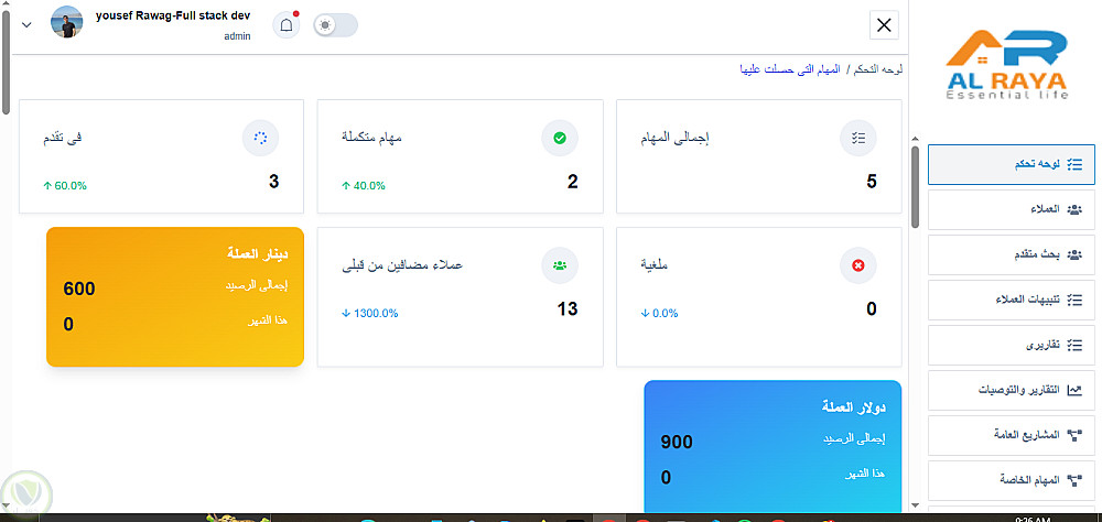 5- اداره العملاء وكل مستخدم بيظهر ليه فقط العملاء خاصين فيه ما عد الادمن بيظهرله جميع العملاء