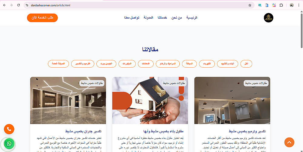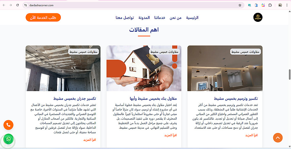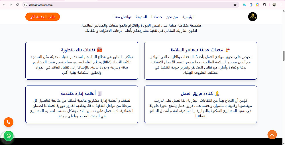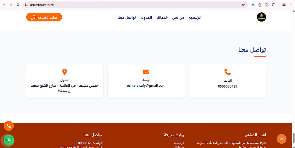 موقع تعريفى لشركة مقاولات لعرض خدماتهم وطرق التواصل والعنوان