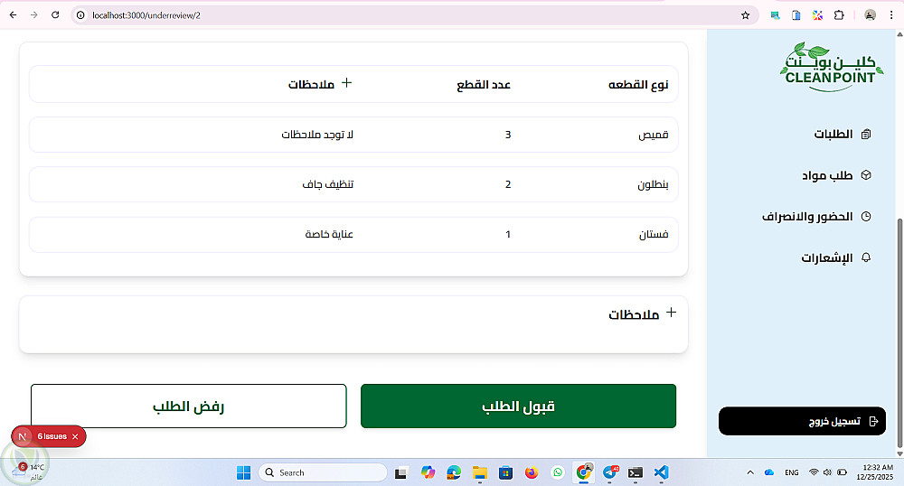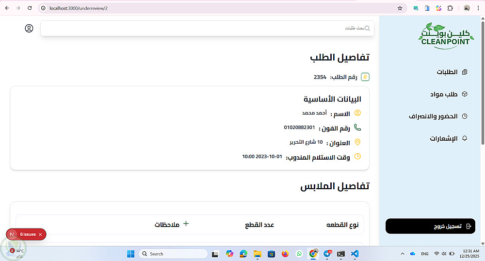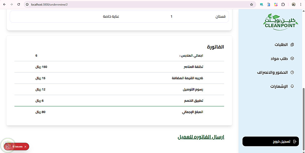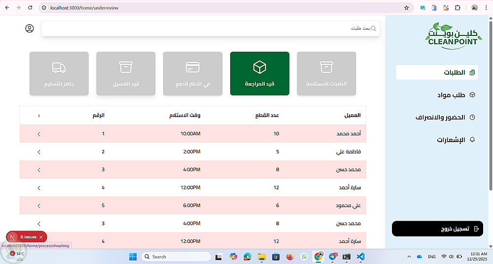 موقع داشبورد ل ادارة مغسلة من خلال متابة الطلبات الجديدة والطلبات قيد الغسيل والطلبات اللى انتهى غسيلها والطلبات الجاهزة للاستلام