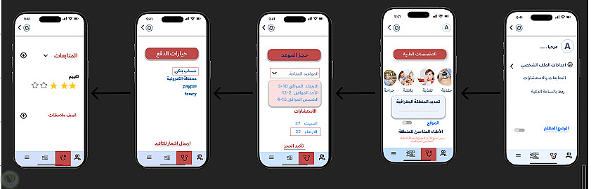 في تصميم تجربة المستخدم وواجهة التطبيق، ركزت على إنشاء تجربة سلسة وبديهية تضمن سهولة التنقل وفهم الوظائف بشكل سريع. تم تصميم الواجهة بحيث تكون مرنة وجذابة بصريًا، مع ترتيب العناصر بطريقة منطقية لتسهيل الوصول إلى المعلومات والخدمات الأساسية. كما تم اختيار ألوان متناسقة وخطوط واضحة تدعم وضوح المحتوى وتعكس هوية العلامة التجارية.