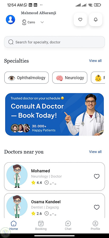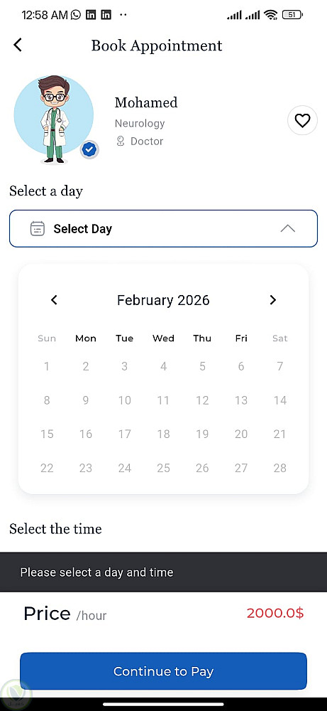 هو مشروع منفذ بشكل تجربي MVP يحتوي علي بيانات لأطباء غير حقيقين لتجربة والعرض نفذ في 14 يوم كا وجهات مستخدم وتفيذ كود تنفيذ عمليات على Rest API فيه
