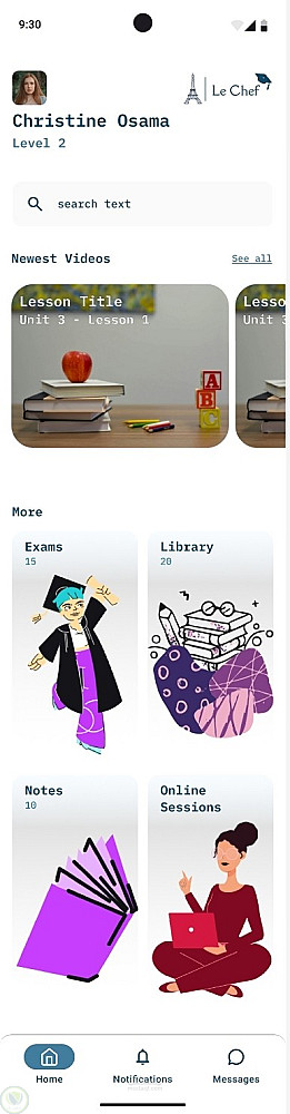 لقد قمت بإنشاء تطبيق للدروس الأونلاين في اللغة الفرنسية باستخدام flutter كا ui.