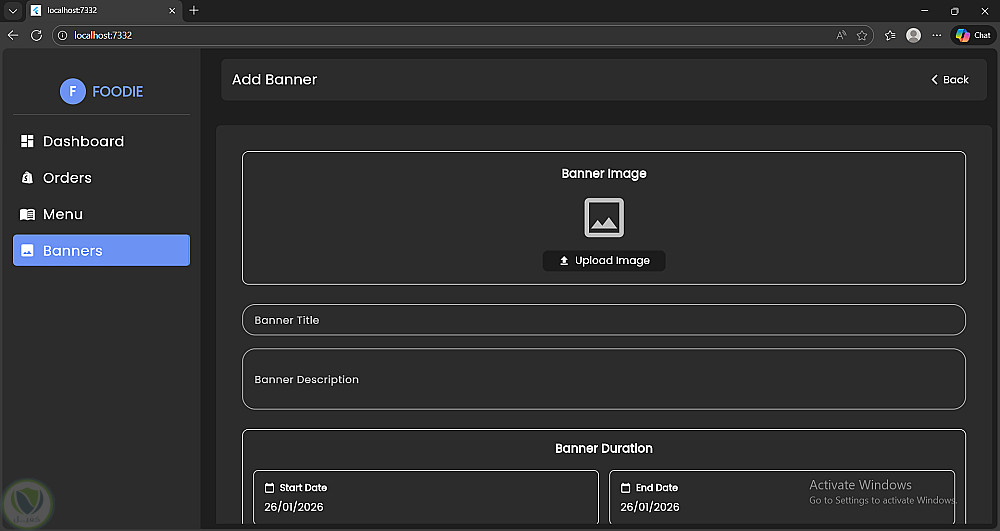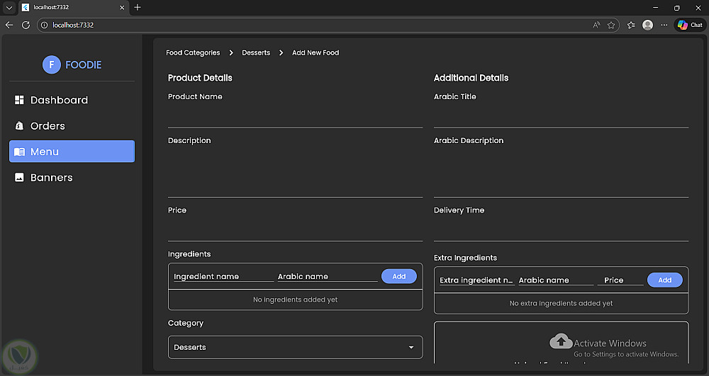 Restaurant Admin Panel هو لوحة إدارة متقدمة مبنية باستخدام Flutter، صممت لتسهيل إدارة المطاعم بشكل كامل. التطبيق يتيح للمسؤولين التحكم في قوائم الطعام، متابعة الطلبات، وتحديث البانرات الترويجية في الوقت الفعلي باستخدام Firebase بطريقة سهلة وسريعة.