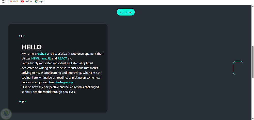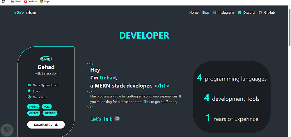 تصميم وتطوير موقع إلكتروني شخصي لعرض الخبرات والمهارات التقنية بشكل تفاعلي وعصري. يهدف المشروع إلى تقديم الهوية المهنية للمطور بطريقة تدمج بين الجمالية البصرية وبين الدقة البرمجية، مع التركيز على تجربة مستخدم سلسة (UX) وتصميم متجاوب تماماً (Responsive Design)