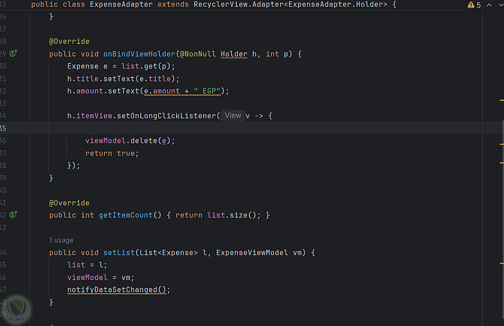 تطوير تطبيق أندرويد لتتبع المصروفات اليومية باستخدام Java و MVVM