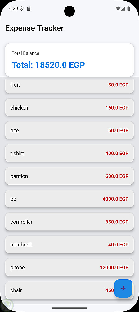 تطبيق أندرويد مخصص لتسجيل وتتبع المصروفات اليومية، يتيح للمستخدم إضافة المصروفات وحذفها، مع حساب إجمالي المصروفات تلقائيًا وعرضه بشكل واضح داخل التطبيق.