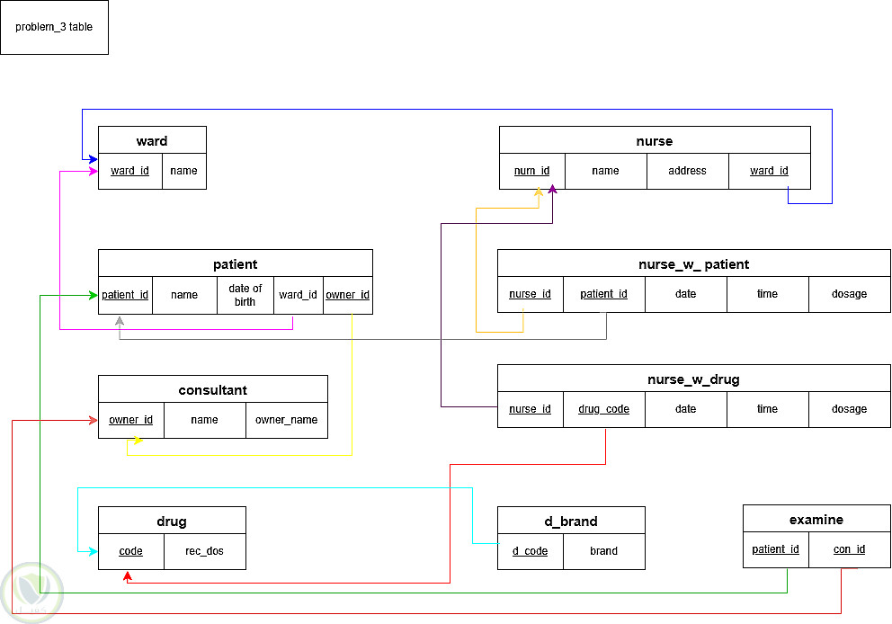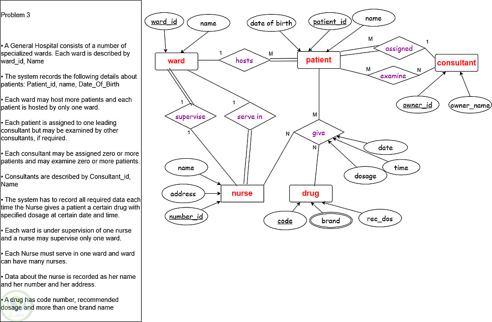 إدارة التمريض: توضيح العلاقة المزدوجة بين الممرضة والعنبر (علاقة إشراف 1:1، وعلاقة عمل 1:N).