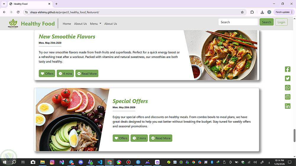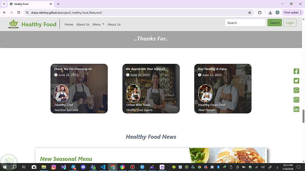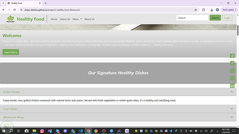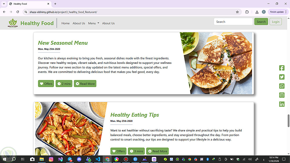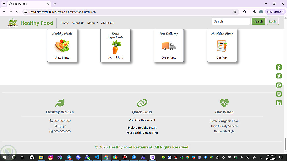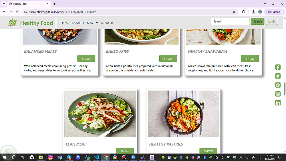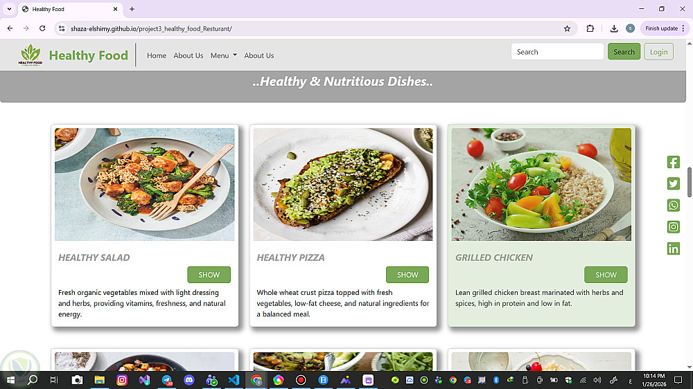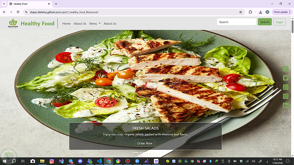 هذا مشروع لموقع مطعم Healthy Food تم تصميمه وتطويره باستخدام Bootstrap لتوفير واجهة احترافية وسهلة الاستخدام.