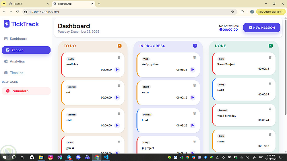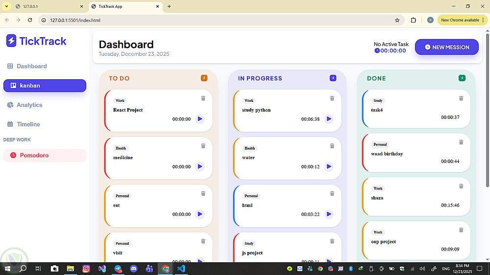 مشروع TickTracker Dashboard