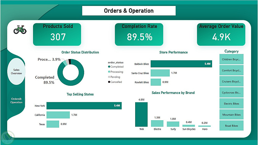 يهدف هذا المشروع إلى تحليل بيانات مبيعات الدراجات لاستخراج رؤى تساعد على فهم أداء المبيعات، كفاءة العمليات، واتجاهات الأعمال.
