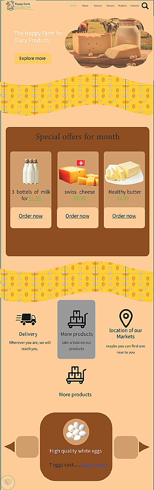 وصف المشروع: تطوير صفحة هبوط احترافية لمشروع Happy Farm لبيع منتجات الألبان الطبيعية كالحليب والزبدة. يهدف الموقع لربط جودة المزرعة التقليدية بتجربة تسوق رقمية عصرية.