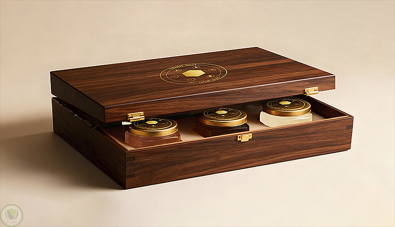 مفهوم هوية علامة تجارية فاخرة مستوحى من العسل الطبيعي، والتراث السعودي، والدقة الهندسية.