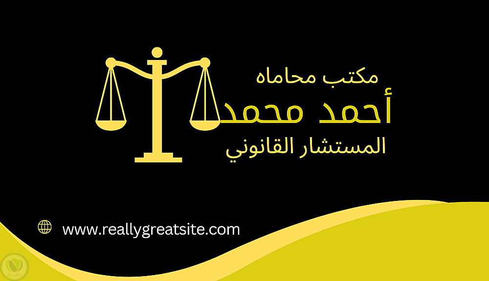أحرص على وضوح المعلومات، تنسيق الألوان بشكل رسمي، وتصميم بسيط يعكس المهنية والثقة في المجال القانوني.