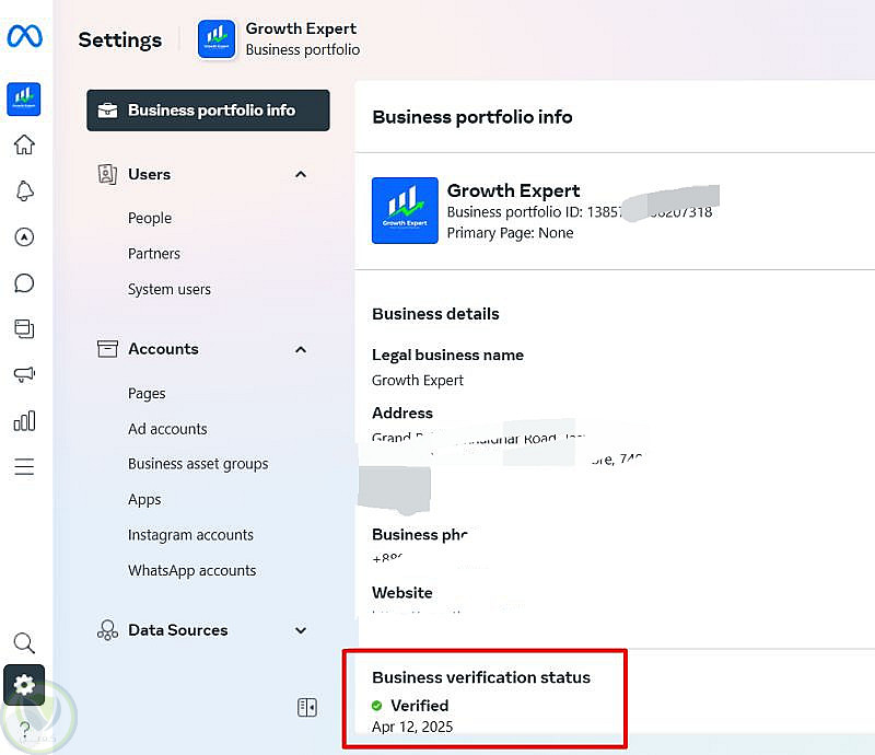 استكمال وتأكيد بيانات النشاط التجاري داخل لوحة تحكم ميتا.