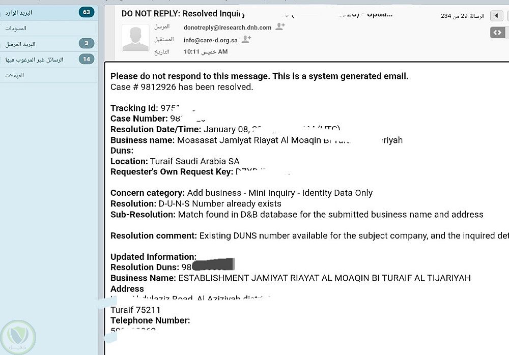 نجاح استخراج الرقم (D-U-N-S) في وقت قياسي واستلام رسالة التأكيد الرسمية، مما مكّن الشركة من استكمال تأسيس بنيتها التحتية الرقمية (مثل حسابات Apple Developer وتوثيق Meta Business Manager) بكل أمان وموثوقية، وتفادي أي قيود مستقبلية.