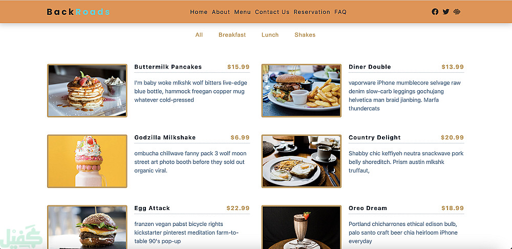 يعرض معلومات عن الكافتيريا ، يظهر قوائم الطعام و المشروبات بشكل احترافي . مع امكانية الحجز .. تمت برمجته باستخدام raect .