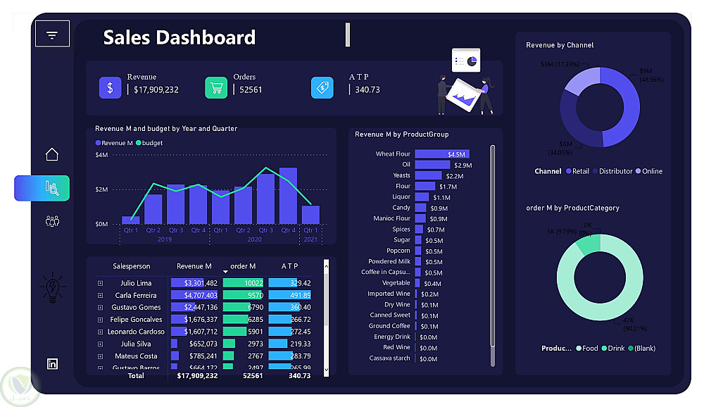 داش بورد عن طريق برنامج الباور بي اي للمبيعات وكذلك الايرادات والمبيعات بالمندوب والمبيعات بالمناطق