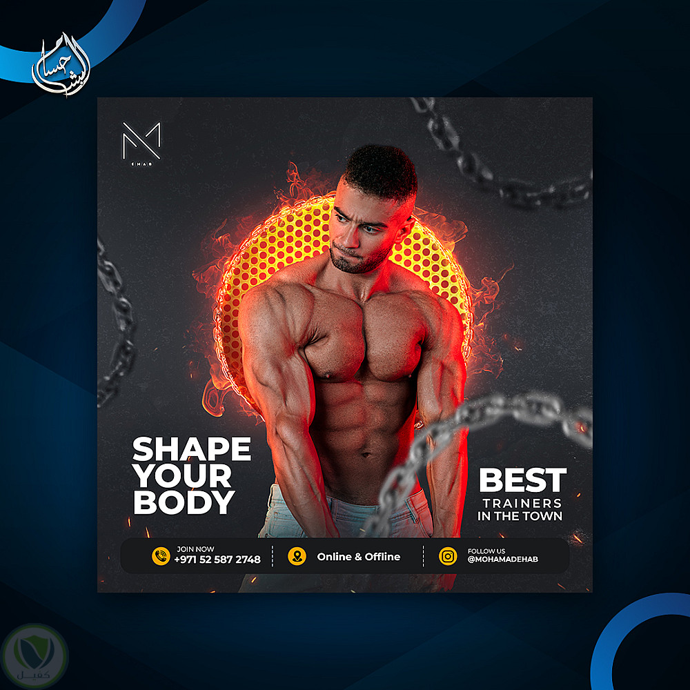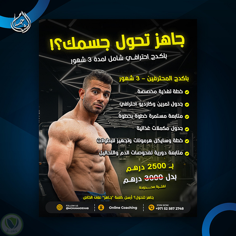 تصميم سوشيال ميديا لمدرب كمال أجسام