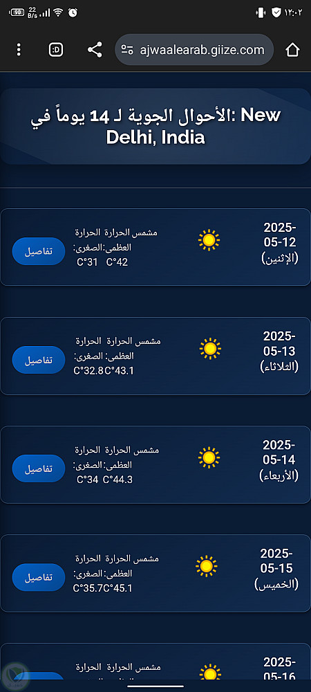 موقع عربي مخصص للطقس تم استخدام HTML php is CSS و قواعد بيانات phpSQL