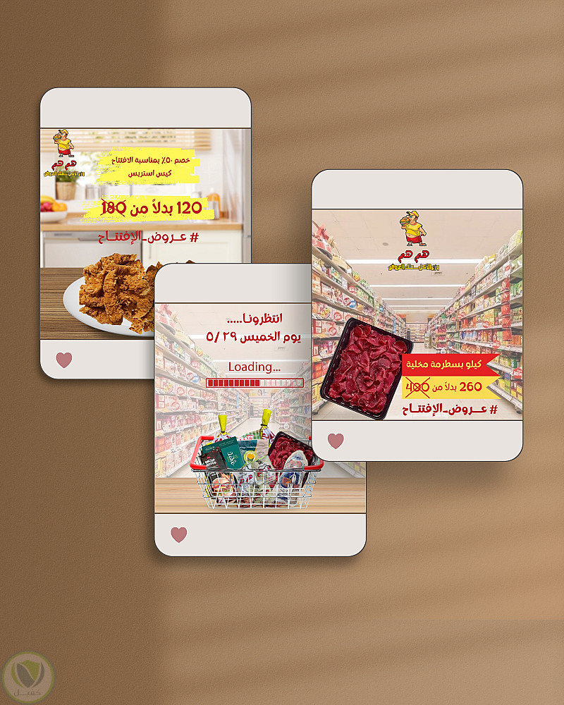 تصميمات تعكس الهوية البصرية الخاصة بالسوبرماركت
