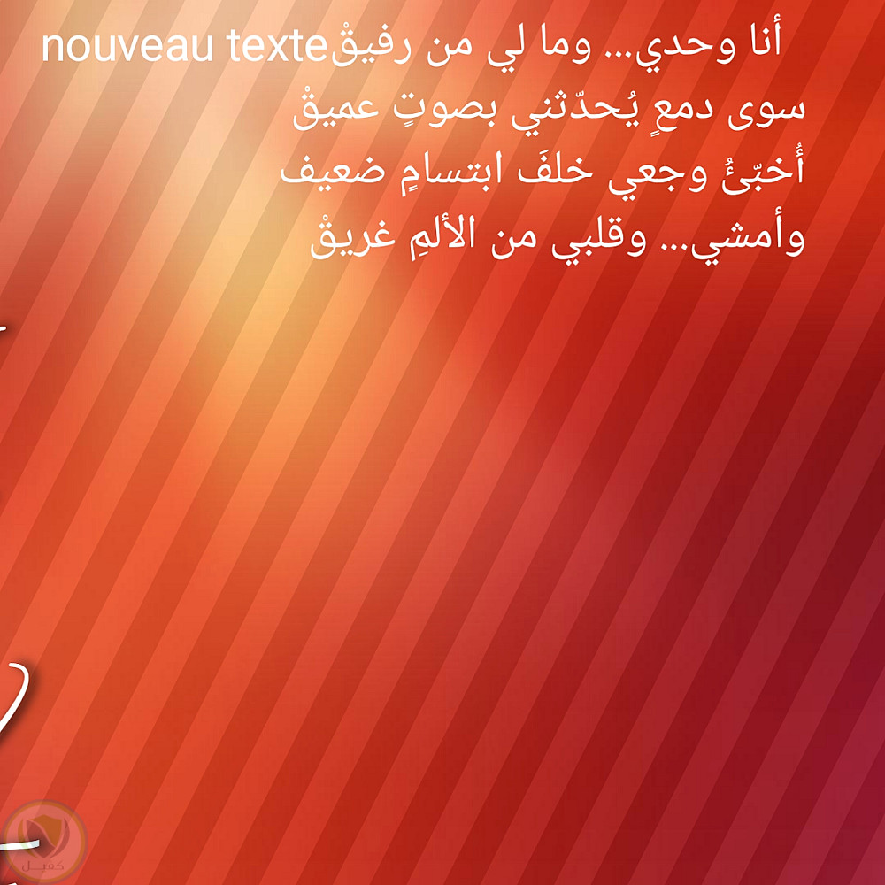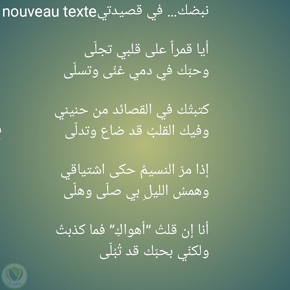 هذا النموذج يحتوي على أبيات شعرية من تأليفي، بأسلوب حزين ورومانسي.