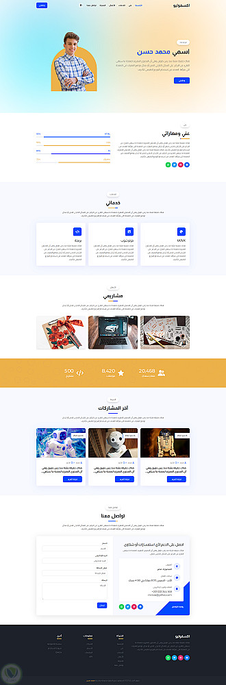 صفحة شخصية تدعم RTL و LTR باللغة العربية والانجليزية بتصميم عصري وجذاب لعرض سيرتك الذاتية واعمالك بطريقة احترافية